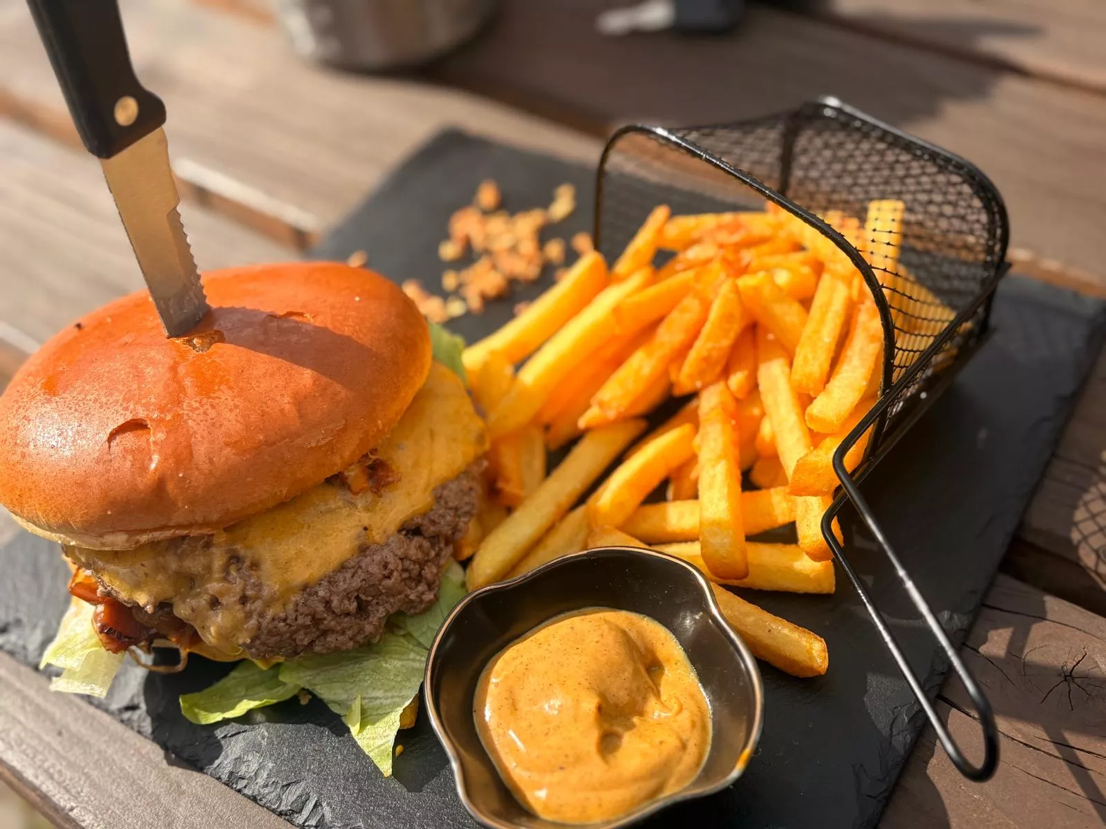 Die besten Burger isst man nicht allein. Schnapp dir deine Freunde, genieß die entspannte Atmosphäre und lass dir deinen neuen Lieblings-Smash schmecken!